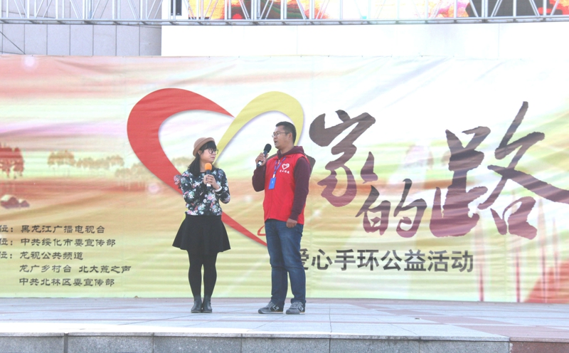 “爱心手环,爱意无限,温暖守护,回家的路。”10月25日,绥化市政府广场,黑龙江电视台公共频道等多个电视及广播频道的大型直播节目中,绥化市爱心传递志愿者服务队的40名志愿者的阵阵口号声,从直播现场,一直传播到黑龙江大地的城市乡村……在这两个半小时的节目中,志愿者服务队个人、团队多次登台,接受采访、发表感想,成为直播节目中的主要角色。