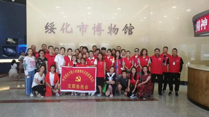 2018年7月1日上午,在建党97周年的特殊日子里,绥化爱心传递青年志愿者服务队党支部组织了50余名志愿者,到绥化市博物馆集体参观了《毛泽东家风大型图片展》《走向新中国图片展》,参观了党建展厅和博物馆展厅(古生物化石展厅、古代史展厅、非物质文化展厅、民俗板块、自然资源板块、农业板块)。