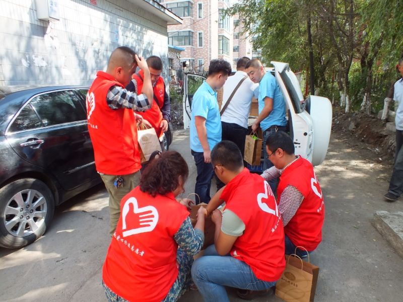 下午一点半,绥化市爱心传递志愿者服务队的志愿者和哈尔滨老鼎丰绥化总代理雅萱商贸公司的员工,首先来到条件比较艰苦的吉泰老年公寓,给这里的老人每人送上了一袋最具传统风味的老鼎丰月饼,祝福老人们健康长寿。随后,他们来到绥化市儿童福利院,为这里的孩子们送去节日的礼物和真诚的祝福。绥化雅萱商贸公司总经理印梅花在了解了儿童福利院的情况以后表示,以后将多多关注这里的孩子,尽自己的努力,让孩子们穿得更好、吃得更好,奉献自己的爱心!今年的中秋节和教师节接踵而至,为了慰问个鼓励特殊教师,大家在绥化市自闭症康复协会邱玉梅会长的陪同下,先后来到新起点自闭症康复中心、初阳自闭症康复中心、新希望特殊儿童康复训练中心,为辛勤工作在特殊教育岗位上的教师送去节日的祝福。