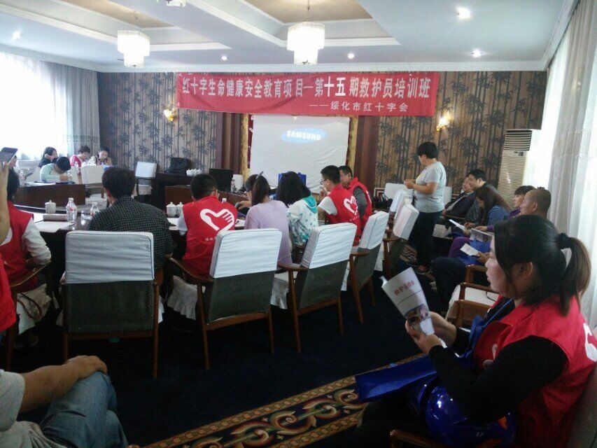 2015年9月19日绥化市爱心传递青年志愿者服务队与绥化市红十字会共同组织了第二批志愿者的救护员培训。在第一批救护员培训结束后,很多志愿者对培训表达了很大的兴趣,特此爱心传递志愿者服务队与市红十字会联系又组织了此次培训,并将培训内容制作成视频,供志愿者们查看回顾内容。并对培训合格的学员,发放绥化市红十字会救护员证。