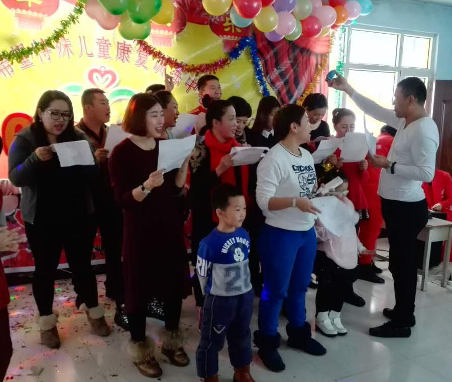 1月3日是新年假期的最后一天,在绥化市新希望特殊儿童康复训练中心,欢乐的歌声中,来自绥化市爱心传递志愿者服务队的志愿者、绥化市自闭症协会的会员、哈尔滨爱心联盟和绥化市爱心企业的爱心人士,和这里的孩子们一起联欢,迎接新年的到来。