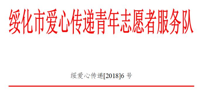 绥化市爱心传递青年志愿者服务队关于表彰2018年度优秀志愿者的决定