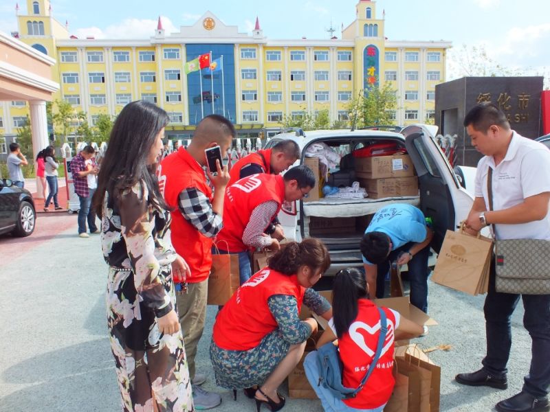 下午一点半,绥化市爱心传递志愿者服务队的志愿者和哈尔滨老鼎丰绥化总代理雅萱商贸公司的员工,首先来到条件比较艰苦的吉泰老年公寓,给这里的老人每人送上了一袋最具传统风味的老鼎丰月饼,祝福老人们健康长寿。随后,他们来到绥化市儿童福利院,为这里的孩子们送去节日的礼物和真诚的祝福。绥化雅萱商贸公司总经理印梅花在了解了儿童福利院的情况以后表示,以后将多多关注这里的孩子,尽自己的努力,让孩子们穿得更好、吃得更好,奉献自己的爱心!今年的中秋节和教师节接踵而至,为了慰问个鼓励特殊教师,大家在绥化市自闭症康复协会邱玉梅会长的陪同下,先后来到新起点自闭症康复中心、初阳自闭症康复中心、新希望特殊儿童康复训练中心,为辛勤工作在特殊教育岗位上的教师送去节日的祝福。