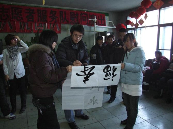 今天一早,天气依然很冷,将近零下20度!8点半左右我离开家,去吉泰老年公寓。刚好9点钟,绥化学院的同学打来电话,他们已经到了!我便加快速度往那里赶。