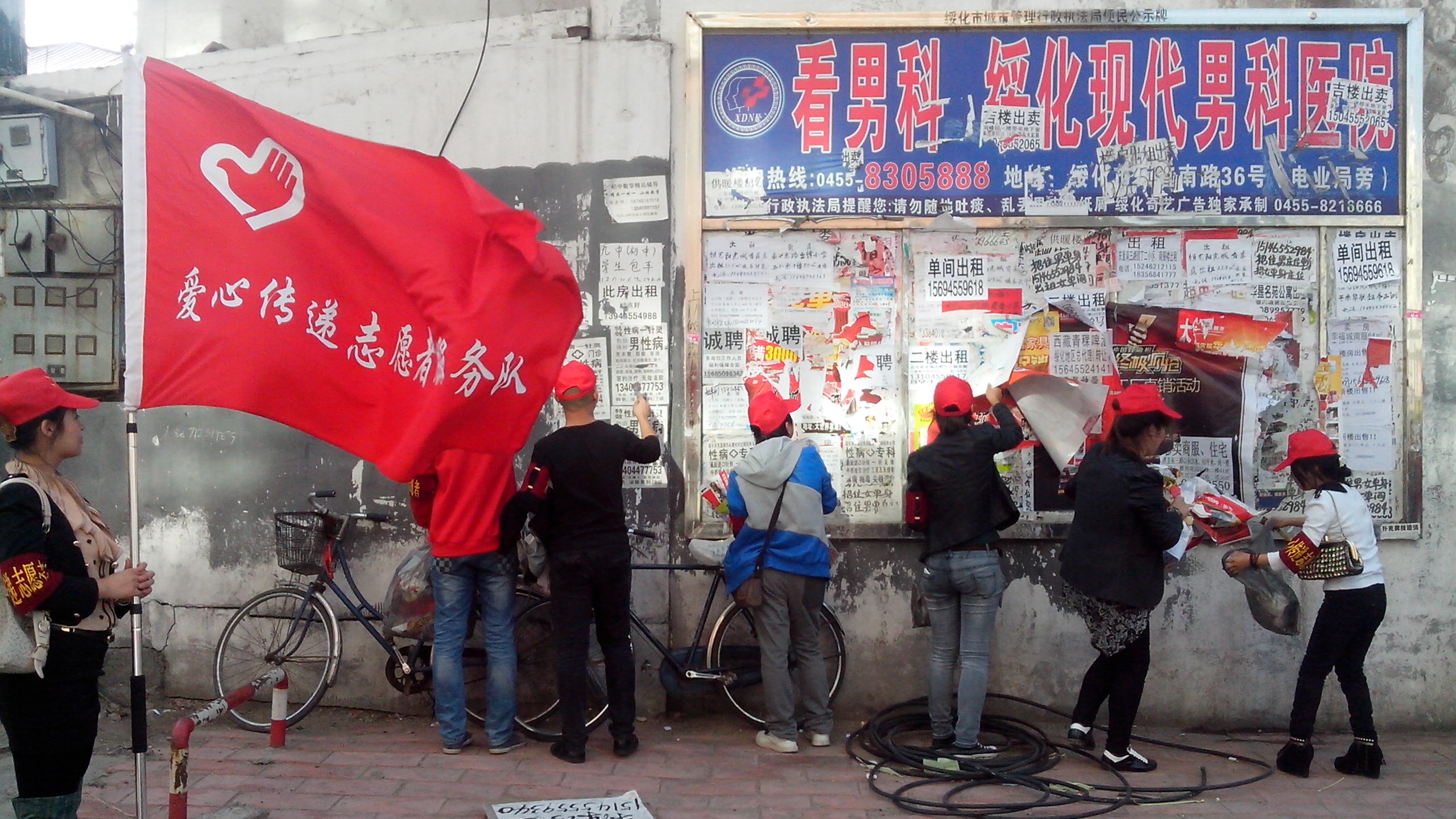 活动内容:参加团市委组织的净城活动,协助城管队员清理街头随意张贴的广告