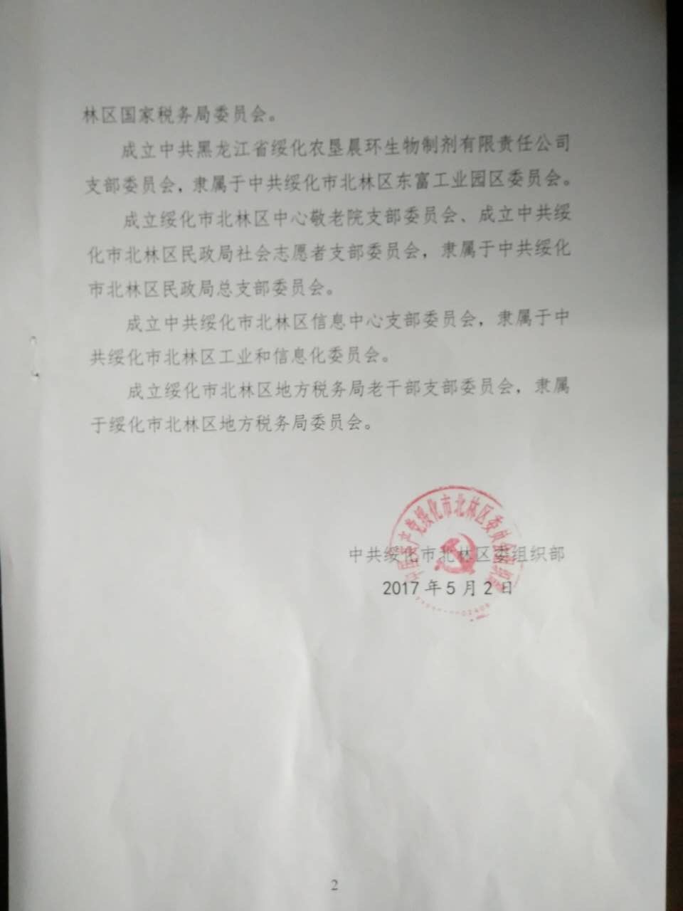 按照《北林区委组织部关于撤销、成立有关党支部的通知》(北组发[2017]12号)的文件精神,我们已获准成立“社会志愿者党支部”,隶属北林区民政局党总支。现就有关情况通知如下: