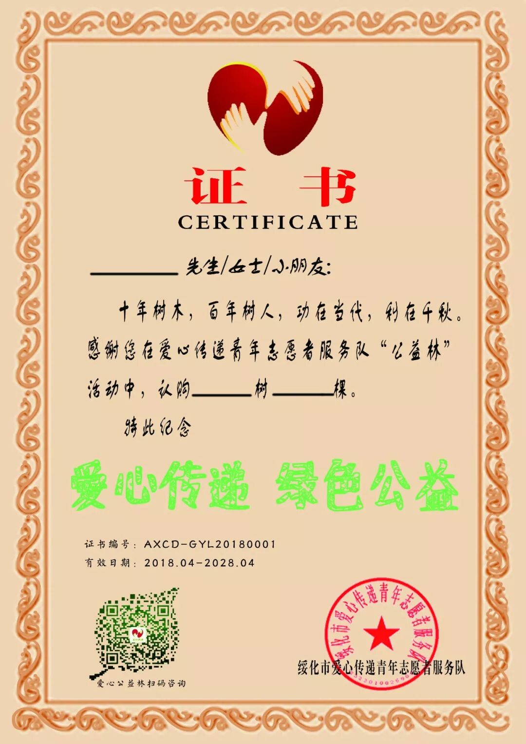愿绿色在身边,愿爱心在传递。